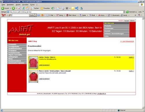 Schon früh nutzt ANiFiT die Vorteile und Möglichkeiten des Internets. Im Jahr 2005 geht der Webshop online, das Intranet wird ausgebaut. Die Webstatistik gibt dieser Strategie recht: Durchschnittlich 430 Besucherinnen und Besucher zählt die Website beispielsweise im Oktober 2005, die durchschnittliche Dauer eines Besuchs beträgt stolze 9 Minuten. Der Internetauftritt bringt einen spürbaren Mehrwert - bei sehr tiefen Kosten.